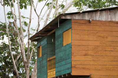 El último lodge es el más grande de los tres, unas diez o quince cabañas muy cerca del río rodeando el comedor. Las habitaciones no tienen número sino nombre, a partir de ahora yo soy Carachupa (zarigüeya) y Pepe Tapir. Esa tarde hacemos un paseo corto para visitar la copa de un árbol muy alto. Una gran parte de la vida de la selva se concentra en las ramas y las hojas de los árboles lejos de nuestra mirada, a cientos de metros del suelo húmedo y oscuro. Infinidad de animales; mamíferos, aves, reptiles y anfibios pasan sus vidas enteras en las alturas de los bosques. Para subir a nuestro árbol han construido una escalera de caracol metálica con cientos de escalones. “No se preocupen, caben hasta 10 personas” nos dice Fiorella y nosotros, exploradores obedientes, subimos haciendo caso omiso al vértigo y al bamboleo de la estructura. Desde la plataforma de madera arriba en la copa se ve un mar verde infinito. Decenas de especies de pájaros: woodpeckers y woodcreepers, tanagers de nuevos colores, guacamayos y loritos. Suso, Jana y Pepe muy aplicados con sus binoculares. Yo me concentro en tomar fotos; trato de capturar la magia de la luz enredada en las ramas de nuestro árbol a esa hora de la tarde.