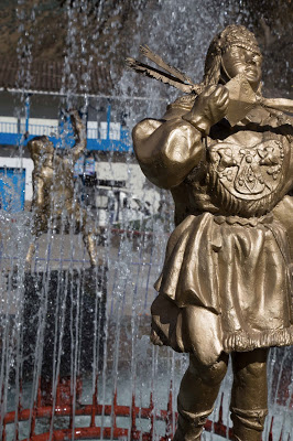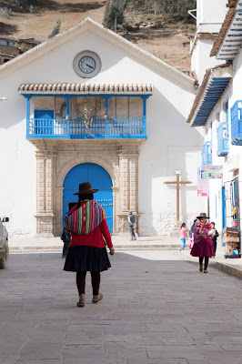 Unos pocos minutos carretera abajo y se llega al pueblo. Paucartambo es conocido por las fiestas de la Virgen del Carmen durante las cuales, cada julio, el pueblo se disfraza y baila en una celebración de sincretismo religioso. Los atuendos de los locales, retratados con muy buen gusto por el fotográfo Mario Testino en su serie “Alta Costura”, están representados en las estatuas doradas que adornan una de las plazas centrales del pueblo. Luego del almuerzo estiramos las piernas caminando por las calles pintorescas, cruzando el antiguo puente que ordenó construir Carlos III en 1775, tomándole fotos a los niños y sus perros, escuchando historias entretenidas del magnífico Roger, simpático, multilingüe, erudito, memorioso. Es así como aprendemos, entre otras cosas, que en la iglesia del pueblo guardan todavía cual reliquia la lengua de un célebre sacerdote admirado por sus dotes de orador.