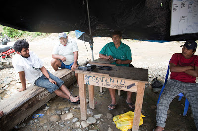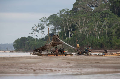 Ya nos toca volver a Lima. El primer tramo de la ruta a Puerto Maldonado es río abajo por varias horas. A medida que nos alejamos del parque vamos viendo más y más campamentos de mineros ilegales lavando arena en busca de oro. Les tomamos fotos al pasar y ellos nos miran sin sobresalto, no sienten necesidad de cubrirse, no tienen sentimiento de culpa, no hay nada de qué avergonzarse, destruyen la selva con total impunidad. El agua del río a estas alturas está altamente contaminada con mercurio, no se puede (no se debe) comer pescado, al borde del camino hay kilómetros y kilómetros de “pampa” deforestada, selva desfigurada, irreconocible. Desde el aire se ven las inmensas cicatrices, tomará siglos -literalmente- para que el ecosistema se regenere, para que la selva vuelva a parecerse a lo que un día fue. Los pueblos mineros son una versión tropical del viejo oeste americano, un puñado de casas poco glamorosas, construidas a la carrera, rodeadas de tiendas de repuestos de motos y motobombas, de basura, de ropa barata y mucho plástico. Una cerveza en este “wild west” cuesta 10 soles, un pollo 60, una puta 100 (en Lima la cerveza cuesta 3, el pollo 20 y la puta quien sabe). Esta es una economía de pueblo de frontera, de hedonismo y despilfarro, lo que ganan los mineros en largas jornadas de trabajo lo gastan en una sola noche.