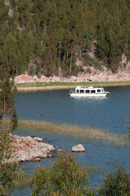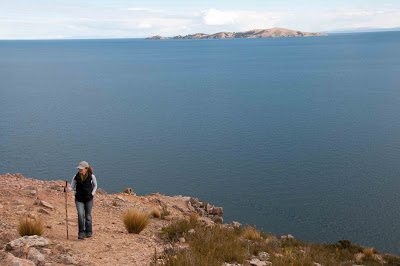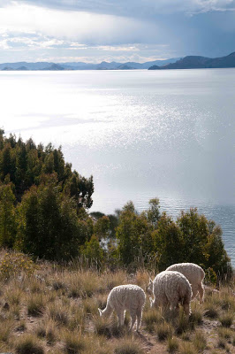El Titicaca es el lago navegable más alto del mundo y con 8300 kilómetros cuadrados el mas grande de América del Sur (el de Maracaibo en Venezuela es en realidad un estuario). El agua del lago, calmada y fría, calmadísima, es de un azul hipnotizante. En nuestro viaje lo recorrimos de norte a sur muy cerca de la frontera con Bolivia donde, si el dia no esta nublado, se ve una hermosa cordillera de nevados (Bolivia tiene 40% de la extensión del lago. Se dice que fue en la Isla del Sol del lado boliviano donde nació la civilización Inca). Hay muchos pájaros; patos negros y de colores, gaviotas blancas, cormoranes y un pájaro endémico que se llama el zambullidor porque nada bajo el agua en vez de volar cuando quiere escaparse. Luego de cuatro horas y media de viaje finalmente llegamos a nuestro hotel en Suasi, una pequeña isla deshabitada cerca del pueblo de Cambria. Suasi pertenece a la señora Marta Giraldo quien la heredó de su familia. Nos cuentan que fue su abuela (o tal vez su bisabuela) quien la compro (o tal vez invadió) a finales del siglo XIX. Marta, quien se ha dedicado desde hace muchos años a estudiar el ecosistema y las culturas de la zona, vive en una pequeña casa, muy modesta, al costado del hotel.