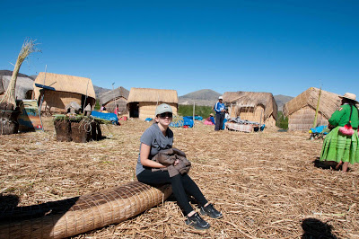 Taquile es una verdadera isla, de las más grandes del lago, ha estado habitada desde hace aproximadamente diez mil años primero por Pukaras, luego por Tiahuanacos y finalmente por los Incas. Pedro González de Taquile compró la isla en 1580 y no fue hasta 1937 que los locales la recuperaron. Hoy en día viven en la isla alrededor de 1500 habitantes en seis comunidades que viven de la agricultura (la isla está llena de antiguas terrazas donde siguen sembrando cebada, maíz, papa, quinoa y trigo). Nos esperaban en la orilla un grupo de mujeres tejiendo y tres hombres que nos mostraron sus costumbres y vestimentas. Un pequeño baile (no muy agitado porque aún estaba recuperándome del soroche) y de vuelta al barco.
